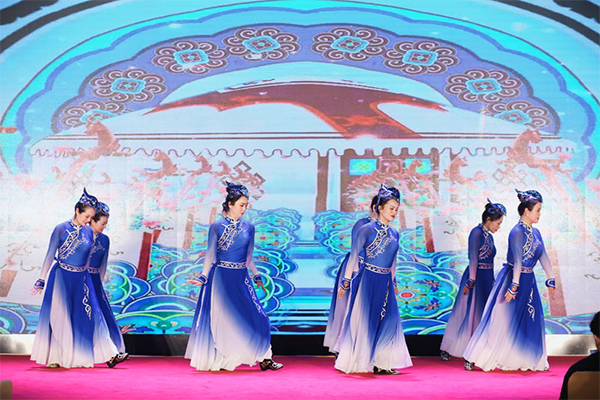 接下來(lái)是舞蹈《蒙族舞-藍(lán)色的風(fēng)》,這個(gè)節(jié)目是2022年湖北省省運(yùn)會(huì)健身舞蹈類項(xiàng)目孝感代表隊(duì)參賽獲獎(jiǎng)作品之一,我們行政部謝主任也是孝感代表隊(duì)隊(duì)員之一。我們邀請(qǐng)到了部分參賽隊(duì)員,她們是來(lái)自孝高、實(shí)小的老師們和舞蹈協(xié)會(huì)的老師們。